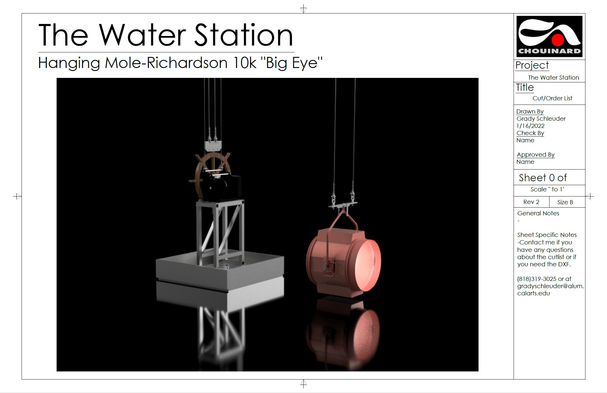 Technical Element Suprivisor and Assistant Lighting Designer for California Insitute of the Arts production of THE WATER STATION in 2022. Co-designed/fabricated suspended/moving MOLE RICHARDSON 10k BIG EYE with Khaled Bukarhi. Director - Hector Alvarez